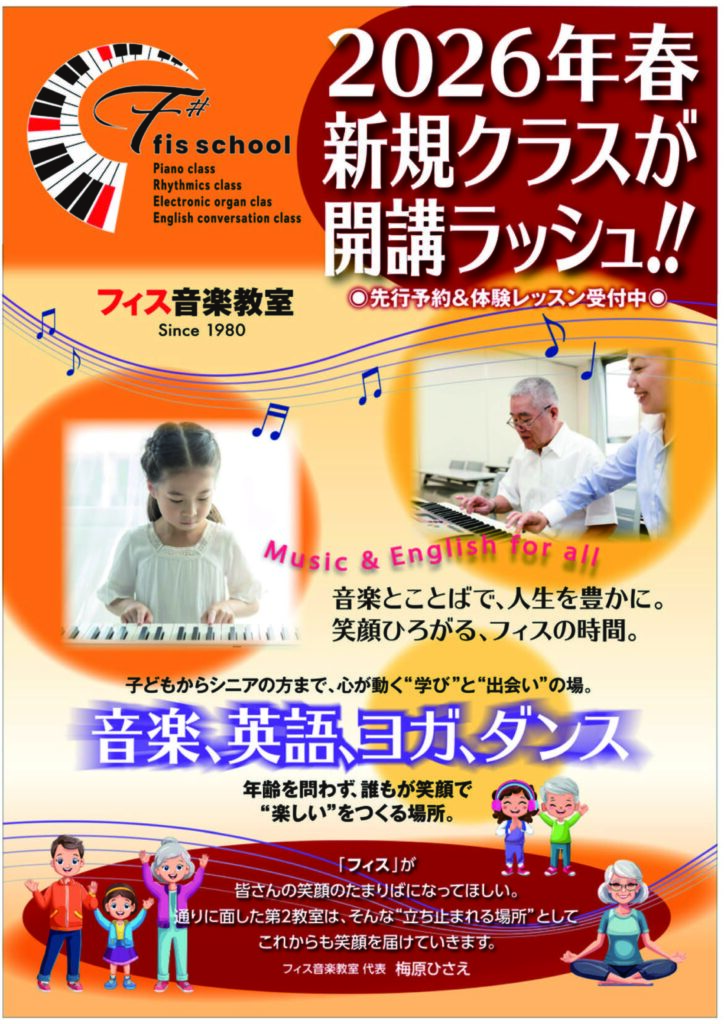 2026年春・新しいレッスンクラスが開講します。是非検討の程、よろしくお願い申し上げます。